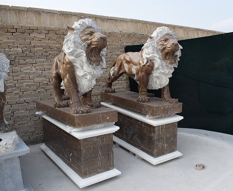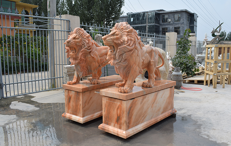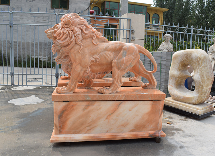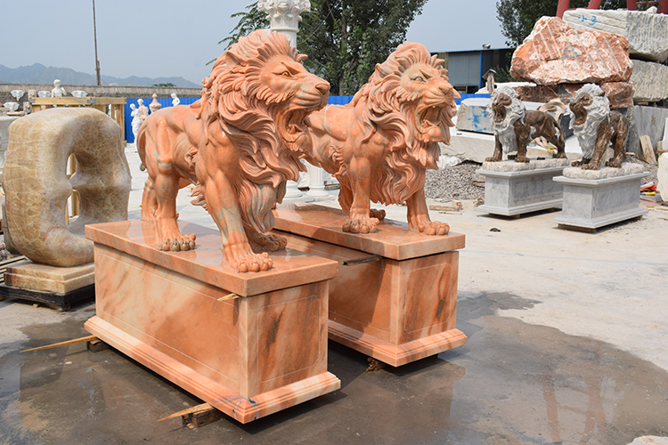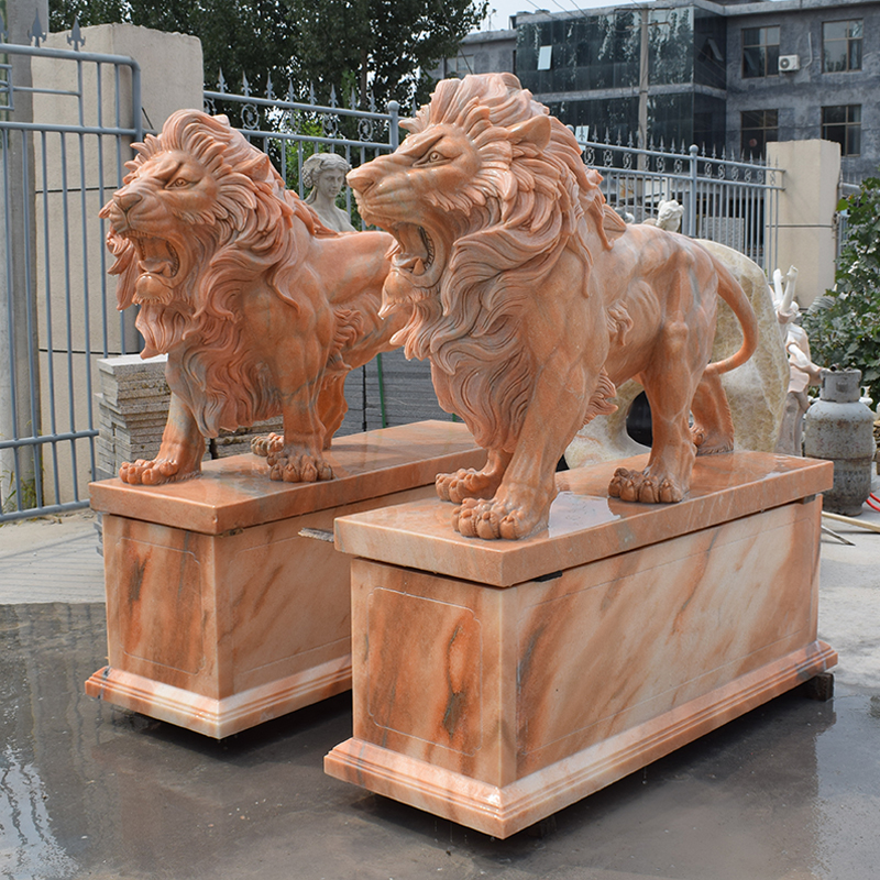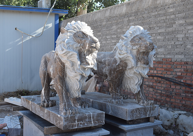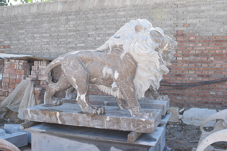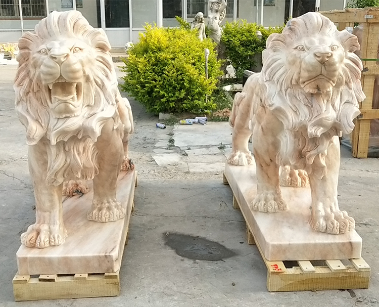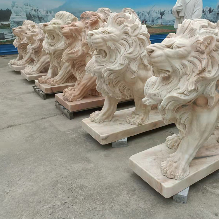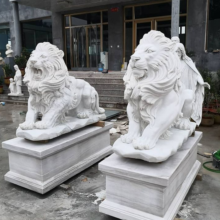 Western Style Outdoor Stone Lion Sculpture Natural Marble Lion Statue