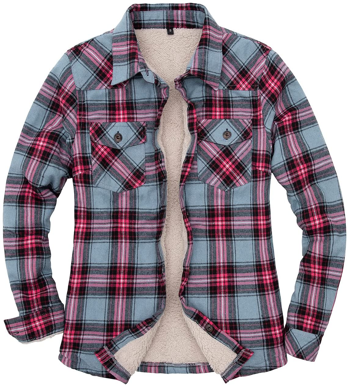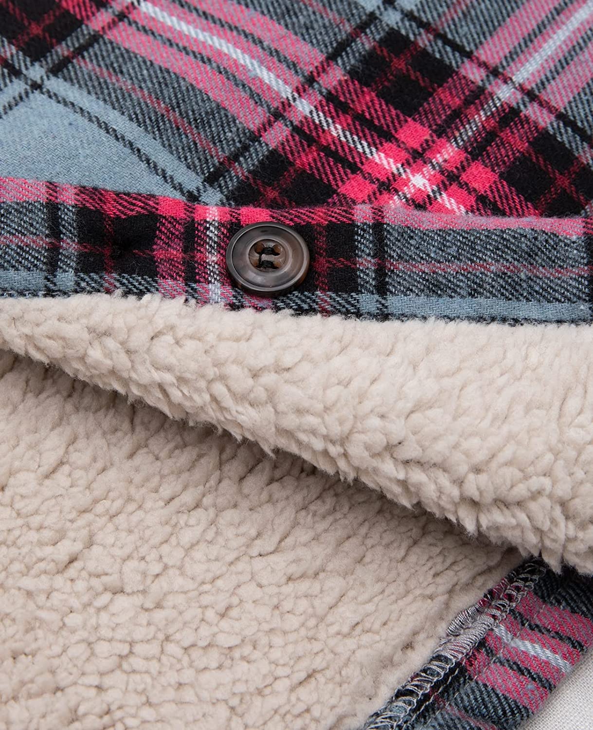 Custom Logo Men's Sherpa Fleece Lined Flannel Shirt Jacket for Men Warm Brushed Plaid Shirt jackets