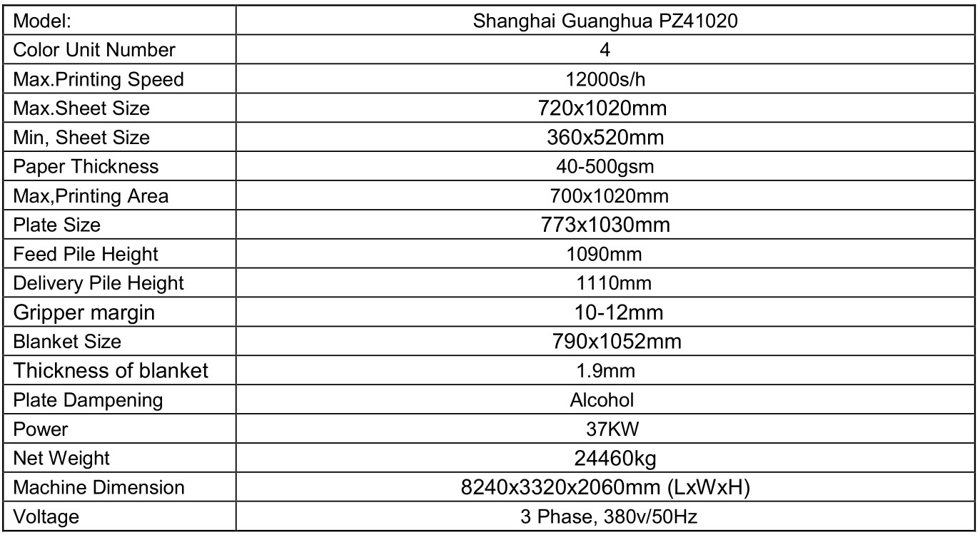 Printing unit 1. Double diameter impression cylinder(φ540) 2. Pneumatic control impression 3. Remote control device of plate adjustment in circumferential & axial & diagonal directions 4. Continuous dampening system 5. Remote control of dampening feed 6. Inking key remote control(option) 7. Semi-automatic plate changing device(option) 8. Plate-bending device(option) 9. Impression automatic adjustment(option) 10. Inking-system auto wash(option) 11. Blanket auto wash device(option)