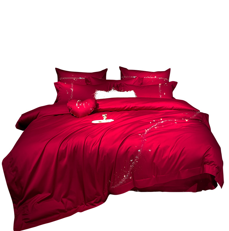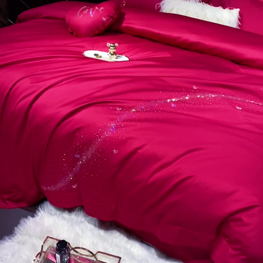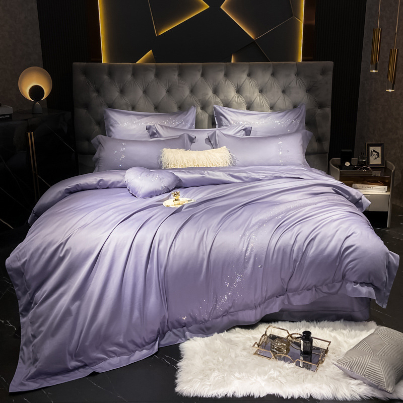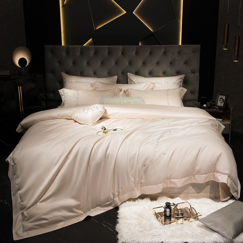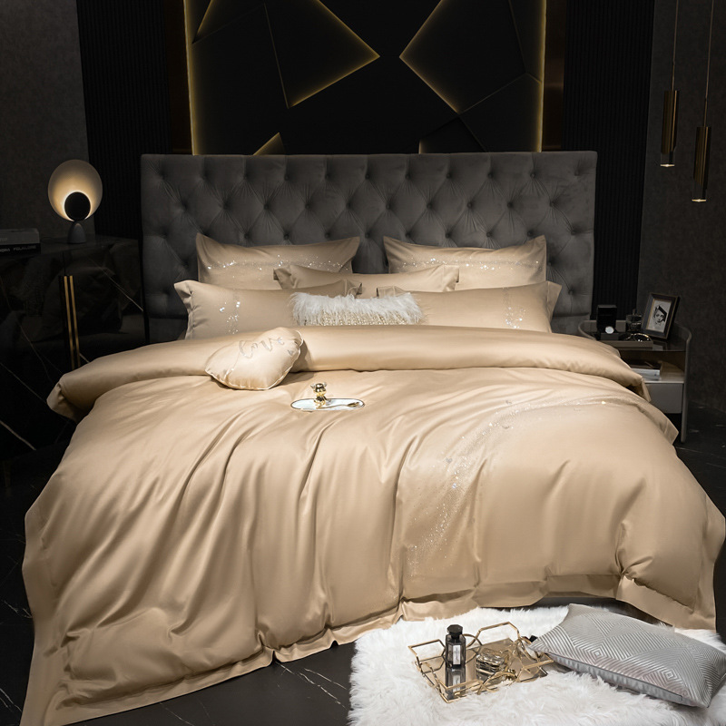 Light luxury hot drill 120S long-staple cotton cotton four-piece cotton bed sheets naked sleeping solid color high-end bedding