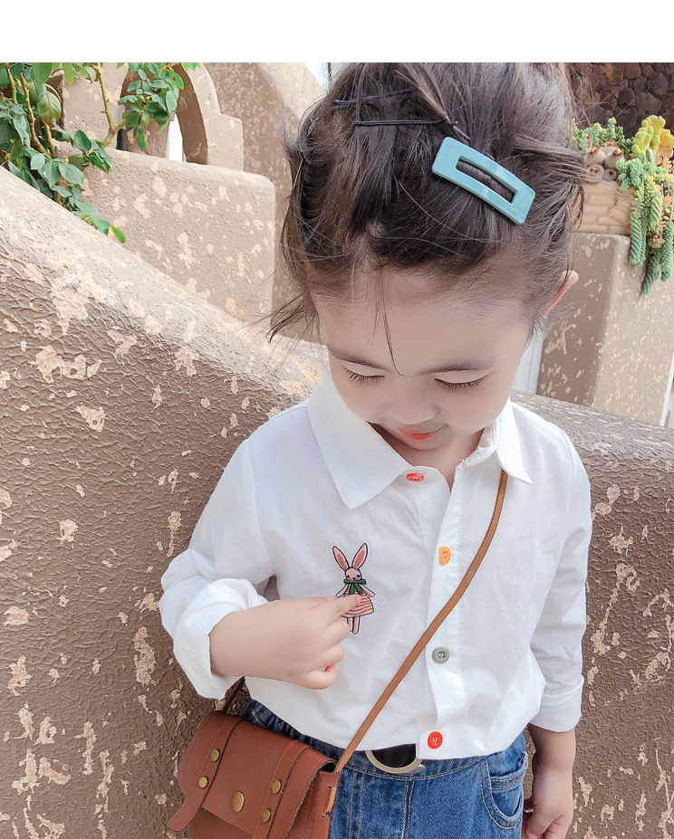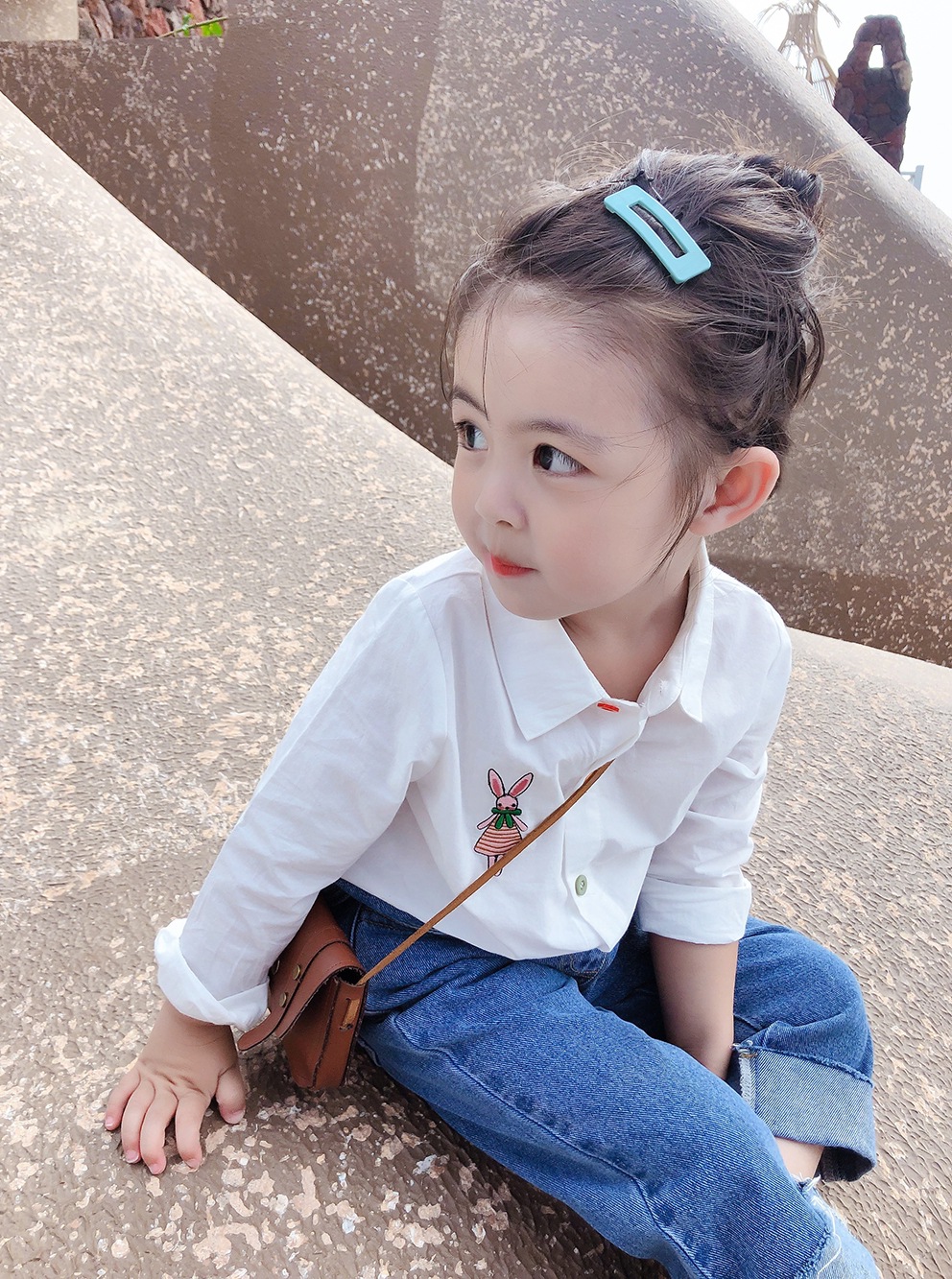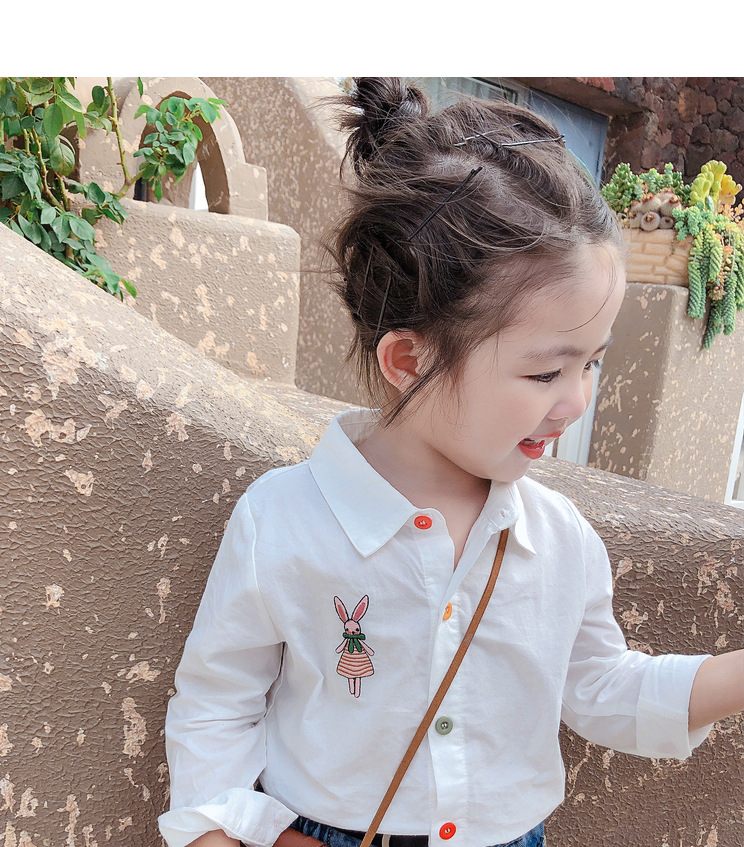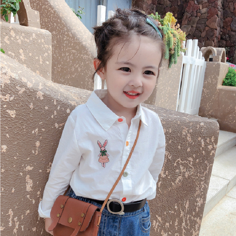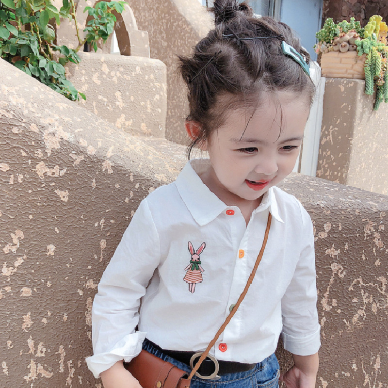 Girl shirt 2021 spring and autumn female baby long-sleeved doll shirt fashion temperament children small flower white shirt