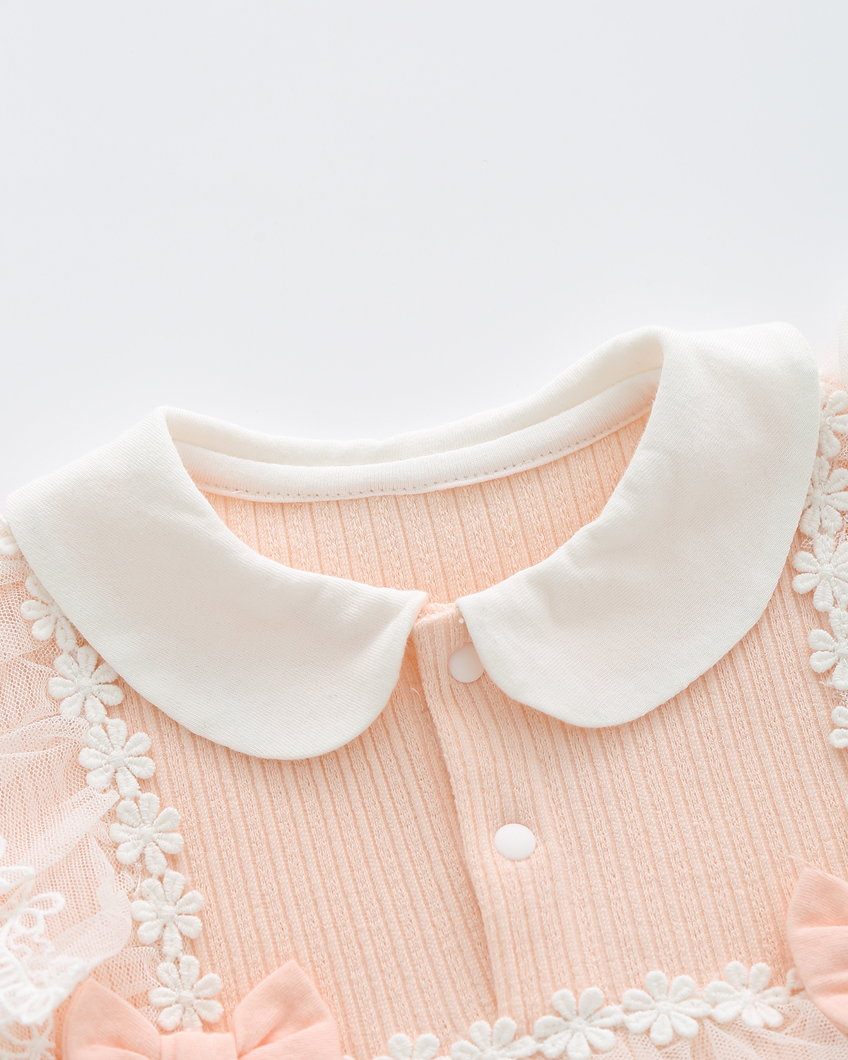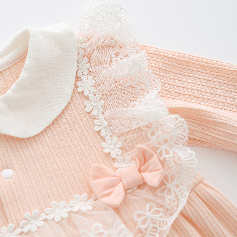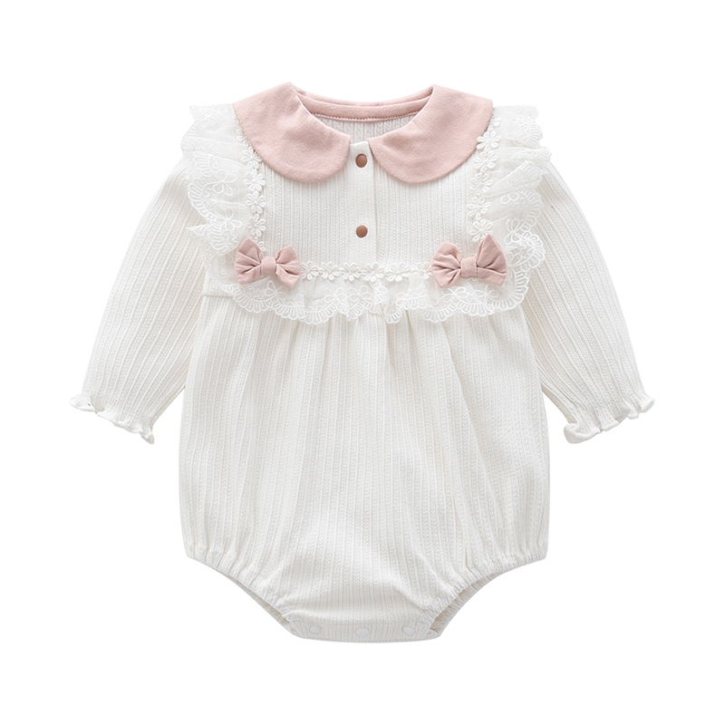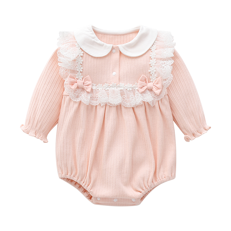 Wholesale Princess style lace baby girl romper spring and autumn long sleeve cotton jumpsuit clothing set