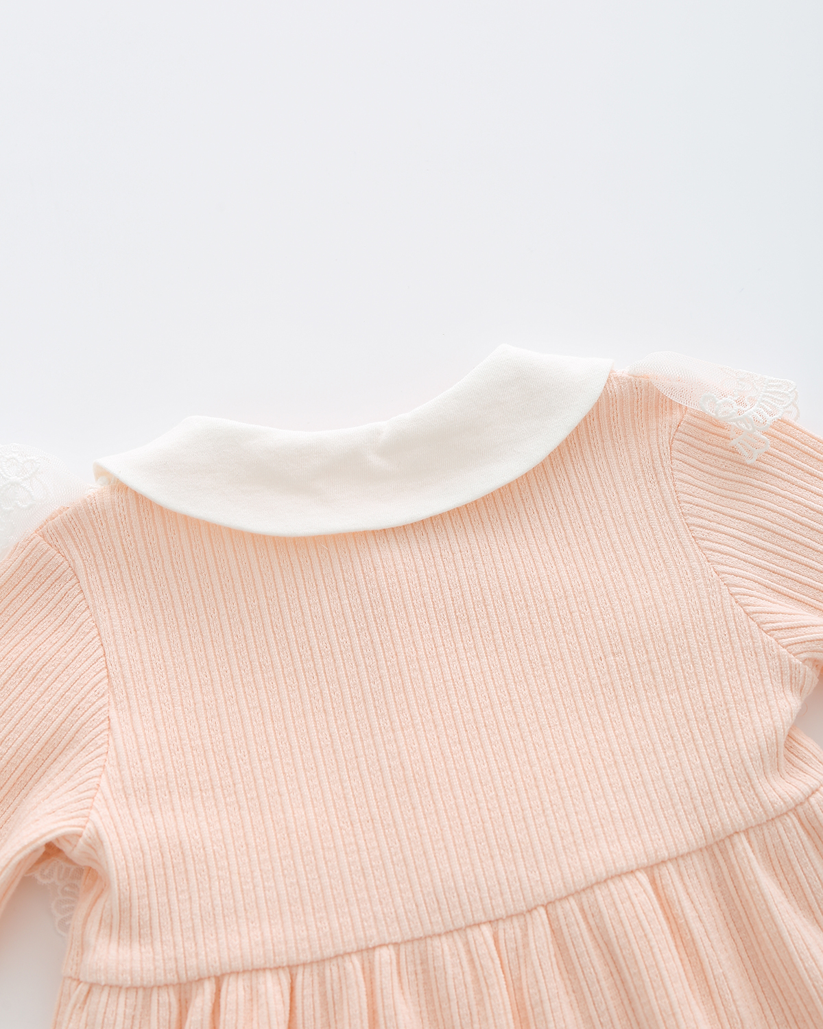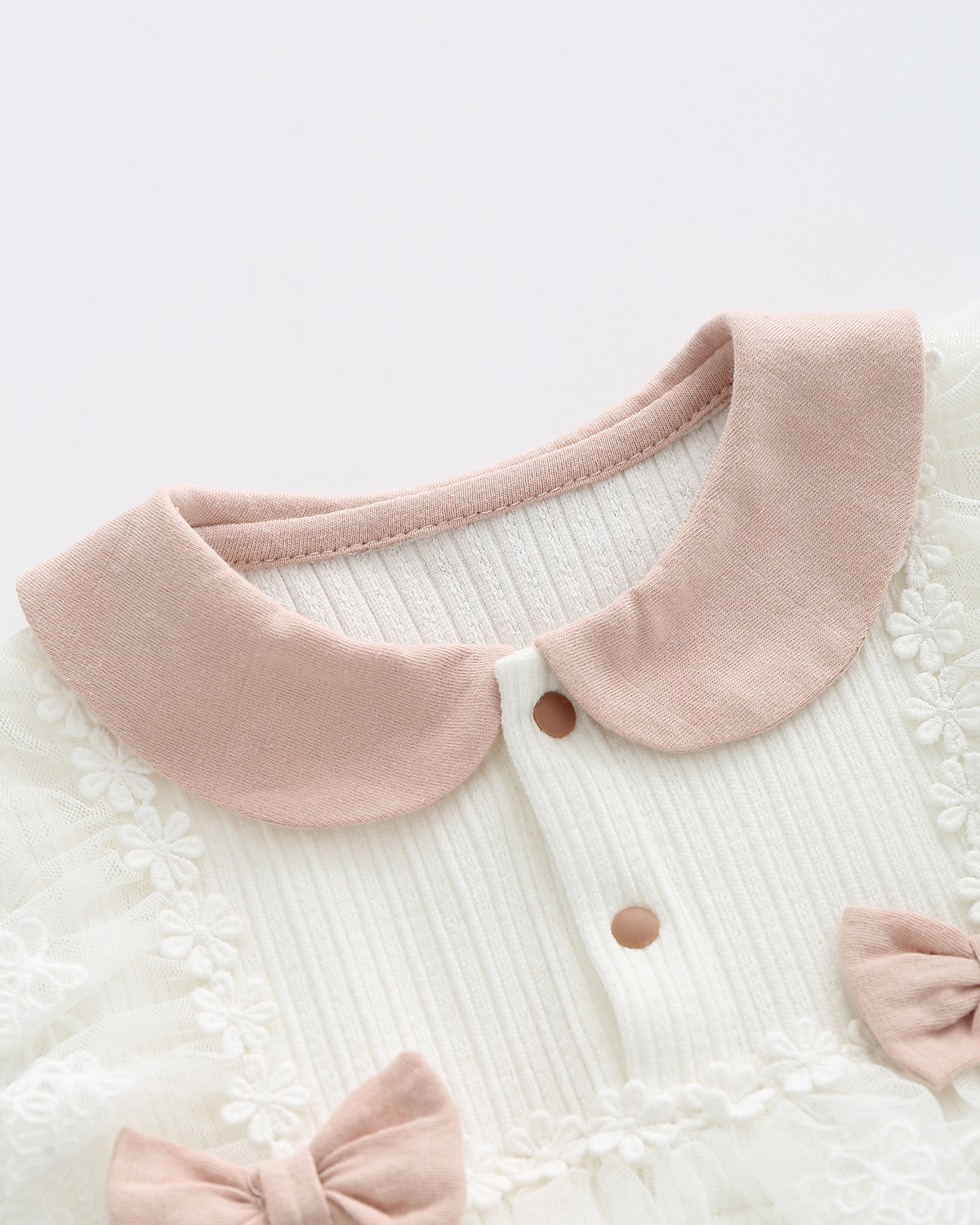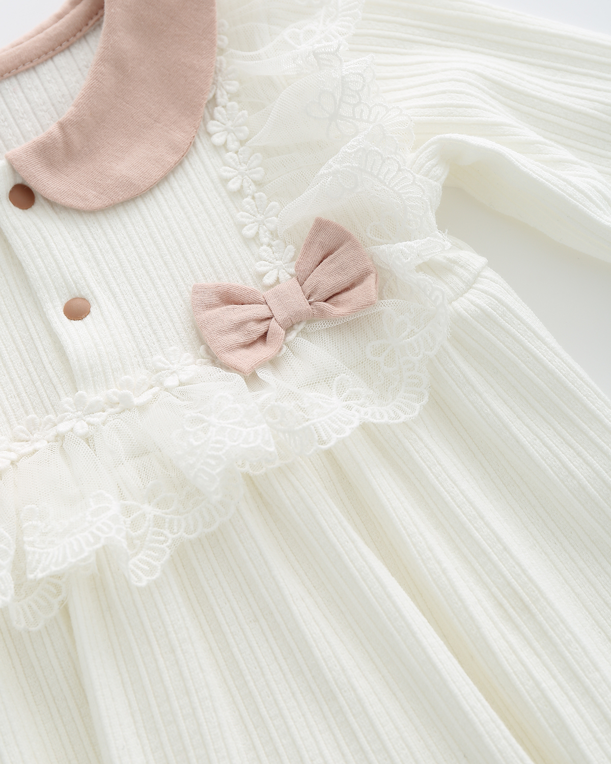 Wholesale Princess style lace baby girl romper spring and autumn long sleeve cotton jumpsuit clothing set