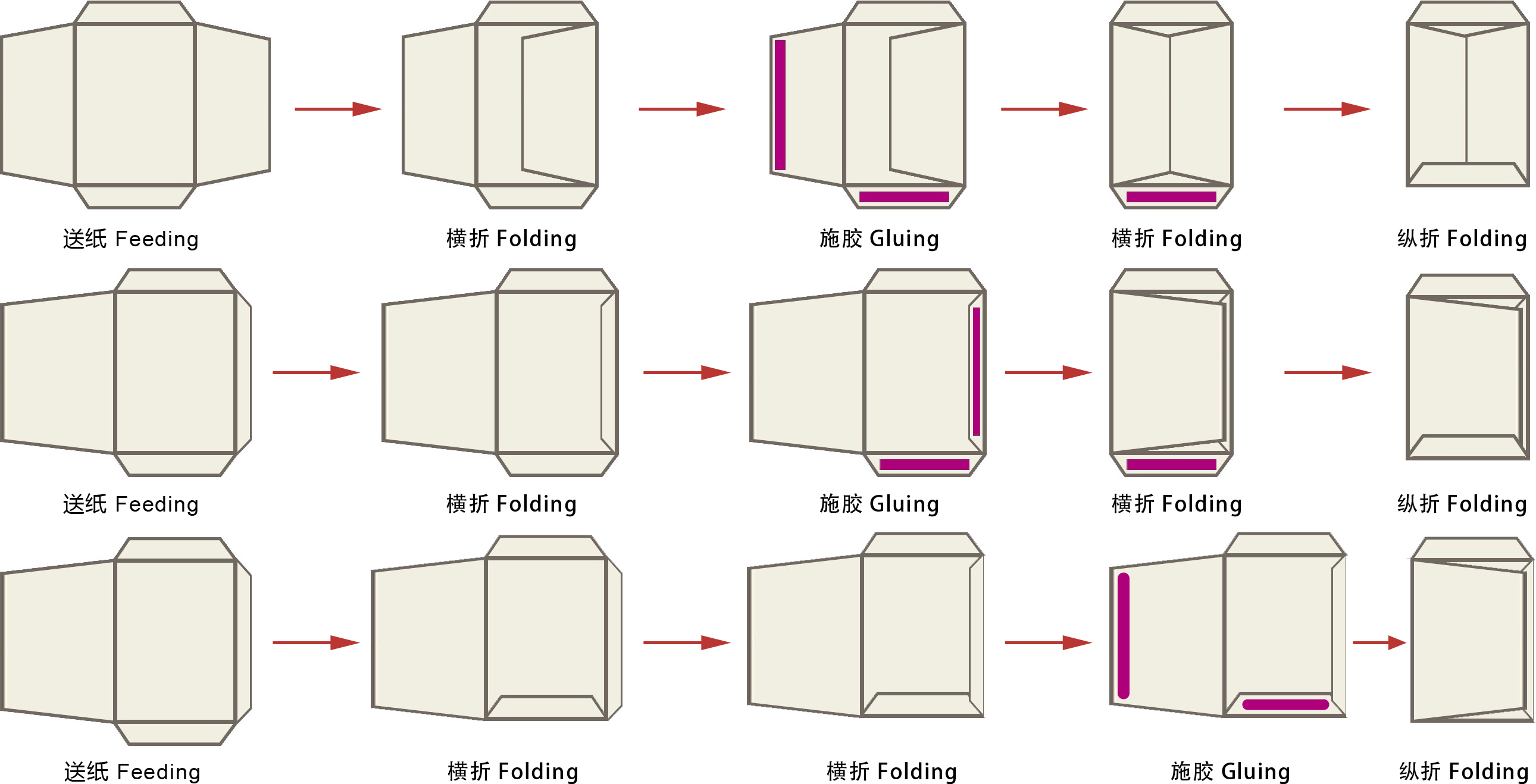 HP-250 PLUS Full automatic packet envelope making machine is suitable for producing small pocket envelope (open-end envelope), red pocket, chopstick bag, drug bag and so on. It also can produce the special bag whose bottom flap is inside.It is characterized by an air-suction paper drawing system, automatic devices for folding, gluing, counting and delivery reasonable structural design, stable performance, efficient mass production and very easy debugging for it.
