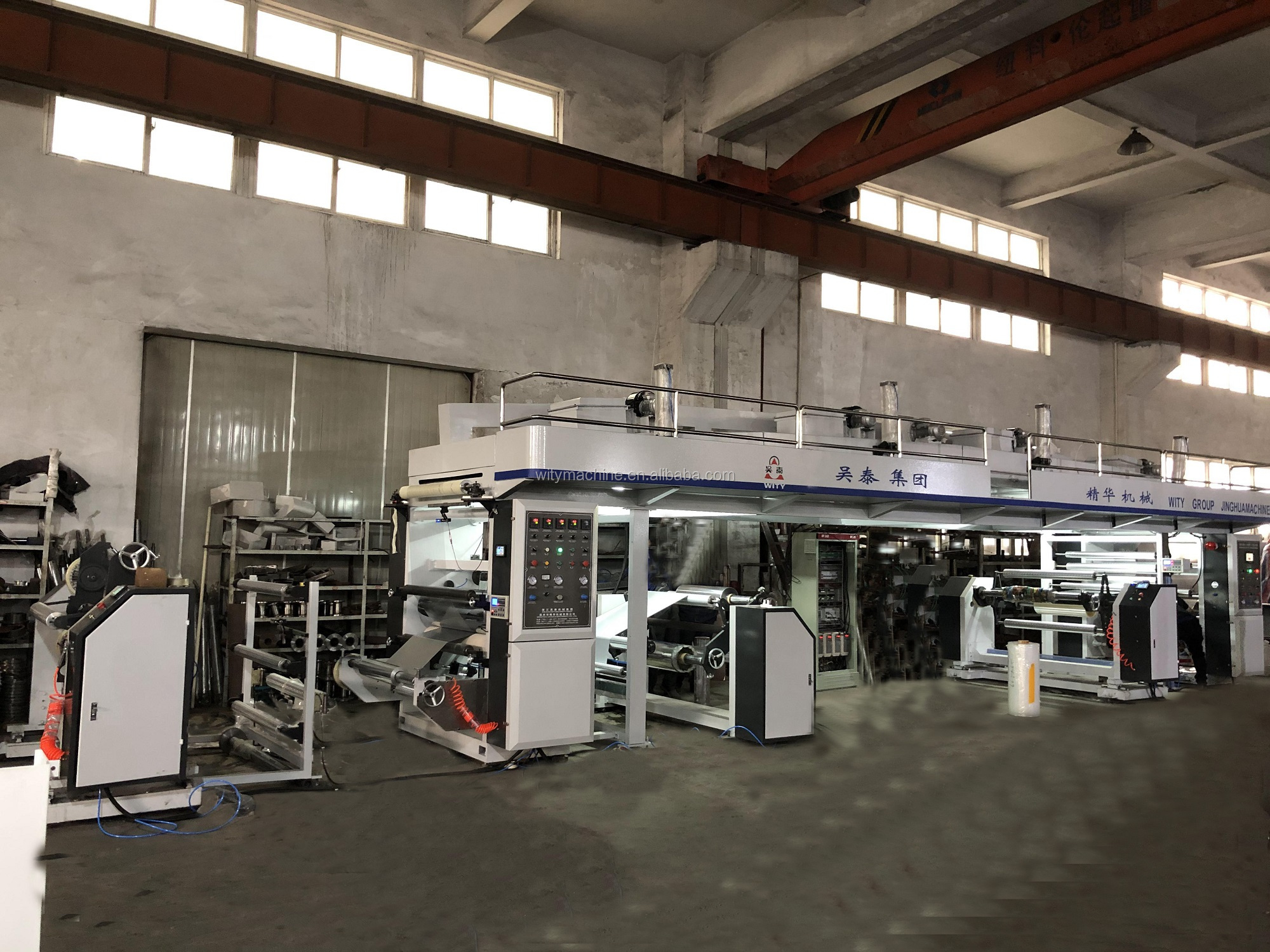 This machine assembles light, electricity, pneumatic in one machine, which has reasonable design and compact structure. The heat oven uses section constant temperature hot air drying, inner guide roll link with main machine. Heating drum uses heat conducting oil; air shaft unwinding and rewinding controlled by magnetic powder; double inverter controls two motor synchronous tension control.