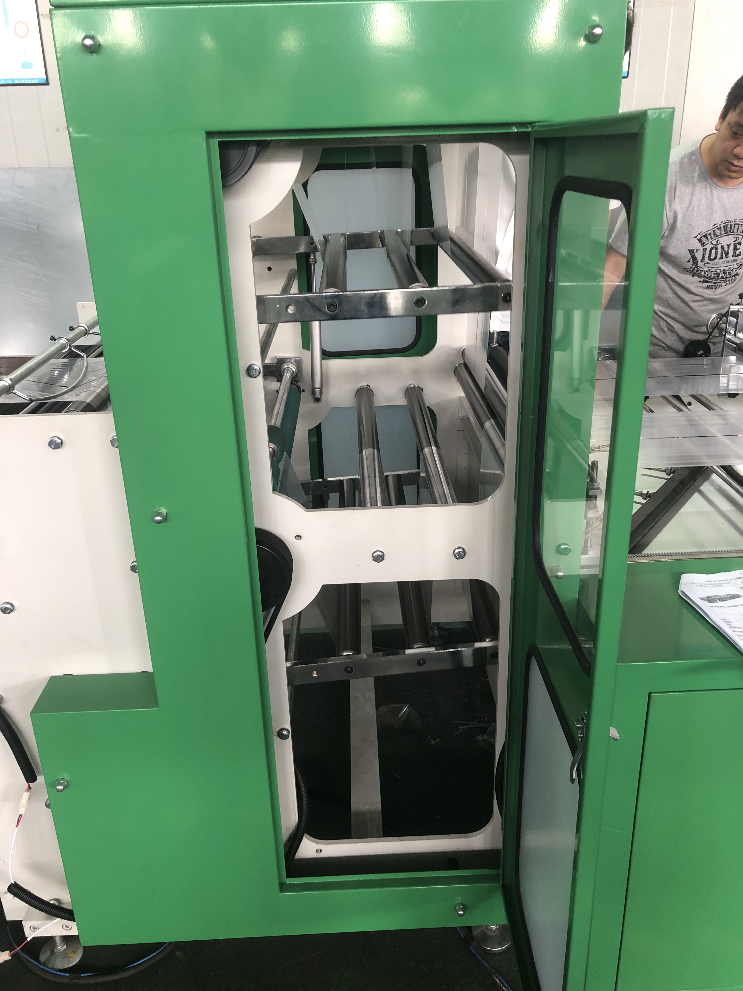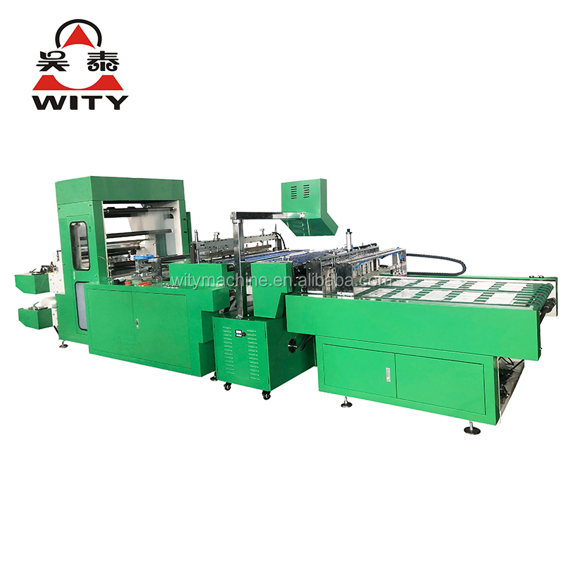 1.Touch screen operating, SYMAC movement control, easy operation 2.The main motor speed, traction speed and unwinding speed synchronization controlled. 3.The whole machine adopts servo motor drive. 4.Accurate tracking printing pattern, automatic stop and alarm when missing printed mark. 5.Pneumatic puncher, the punching position can be adjusted independently. 6.Main motor controlled by frequency inverter, easy operation and reduce power consumption. 7.Automatic counting, can preset the stack number according request quantity. 8.Firm and smooth bag sealing .