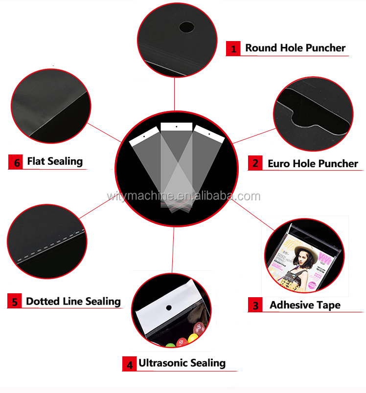 This machine is suitable for various kind of material such as BOPP, CPP, LDPE, HDPE, POF & laminated film,etc, which with printed or without printed. It is a kind of ideal equipment for making Stationery bag, ornaments bag, garment Bag, food bag and hang bag.