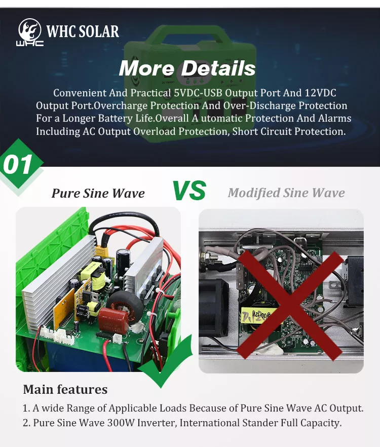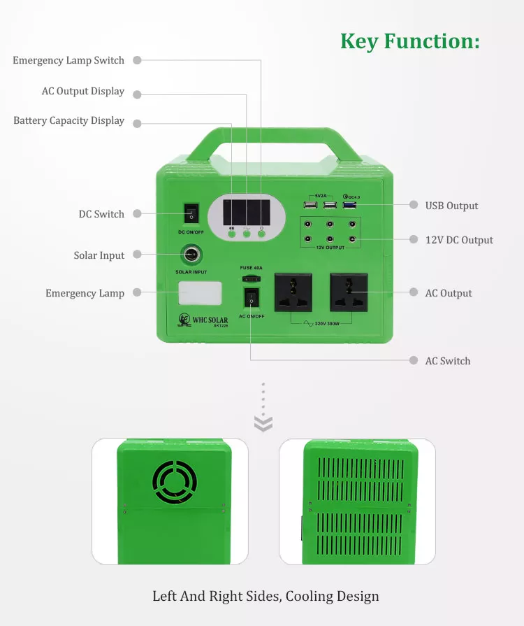 Whc Sk1226 300w Solar Portable Power Station For Camping Lifepo4 Battery 312wh Generator