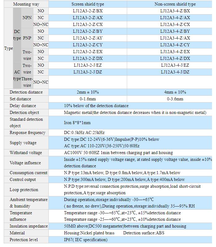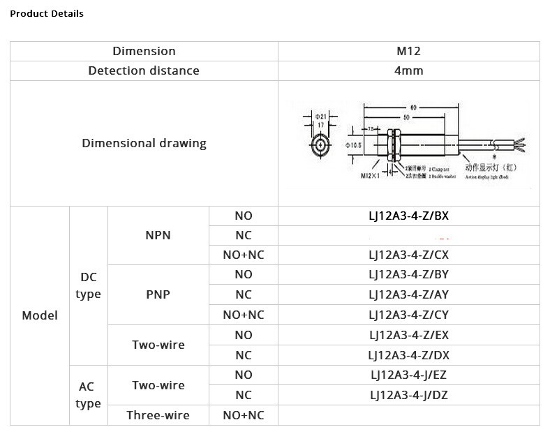 LJ12A3-4-Z/BX/AX/CX/BY/AY/CY/EX/DX/EZ/DZ Inductive Proximity Sensor Switch Approach Sensor M12 4mm NO NC NPN PNP
