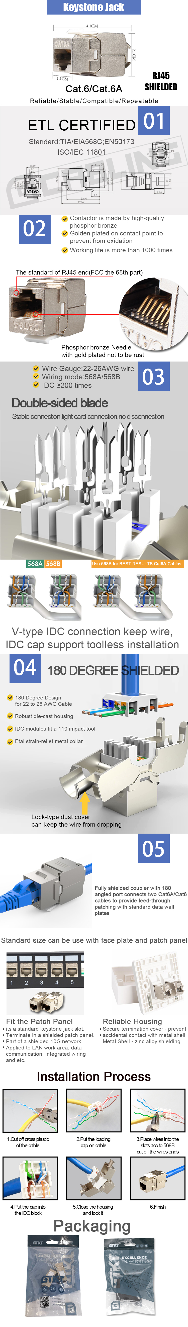 Cat6a Cat6 keystone jack