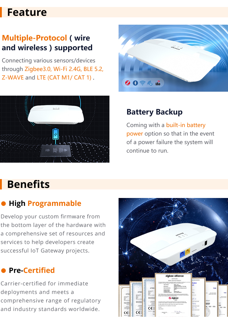LTE Cat M1, Wi-Fi, Zigbee, Bluetooth,Zwave