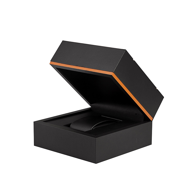 Wholesale Custom Luxury Black PU Leather Cardboard Case Single Watch Jewelry Packaging Box With Embossed Logo
