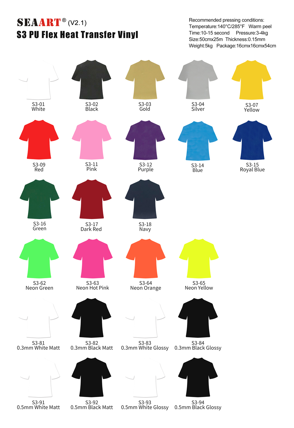 Seaart S3 PU heat transfer vinyl for clothing (only from USA warehouse to US customers)