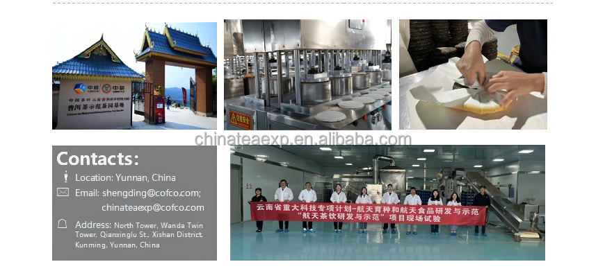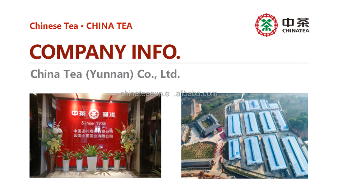 China Tea (Yunnan) Co., Ltd. was newly established in 2007,whose history can be traced back to the foundation of the PRC. It is invested and organized by China Tea Co., Ltd, which is the subsidiary company of state-owned enterprise COFCO. Our products are produced by two tea factories located in Menghai and Fengqing county, which are authorized the ISO, HACCP and Organic certifications by Government. The annual output of Menghai factory is 3000 tons. China Tea (Yunnan) Co., Ltd. focuses on production, process and sale of Pu'er Tea and Black Tea from Yunnan. Its markets are not only in Hongkong, Macao, Taiwan ,Eastern Asia and south-east Asia, but also EU, Russia and USA etc. Our tea is the benchmark of Pu'er industry ,we have good quality, regular processing and pure flavor. We would like to establish the long, stable cooperation with you based on the mutual benefit.