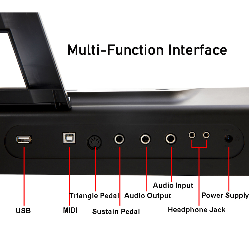 MIDI/ Pedal/ Audio input& output/ Earphone/ USB jack