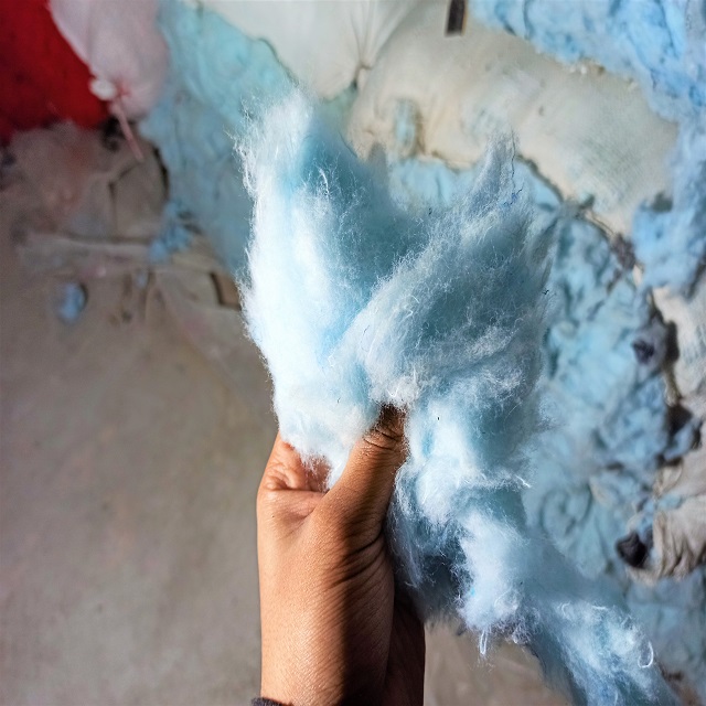 A ONE QUALITY DENIM RECYCLED COTTON FIBER FOR SPINNING AND BEDDING FILLING MATERIAL DIRECT FROM- Manufacturing MILL BANGLADESH