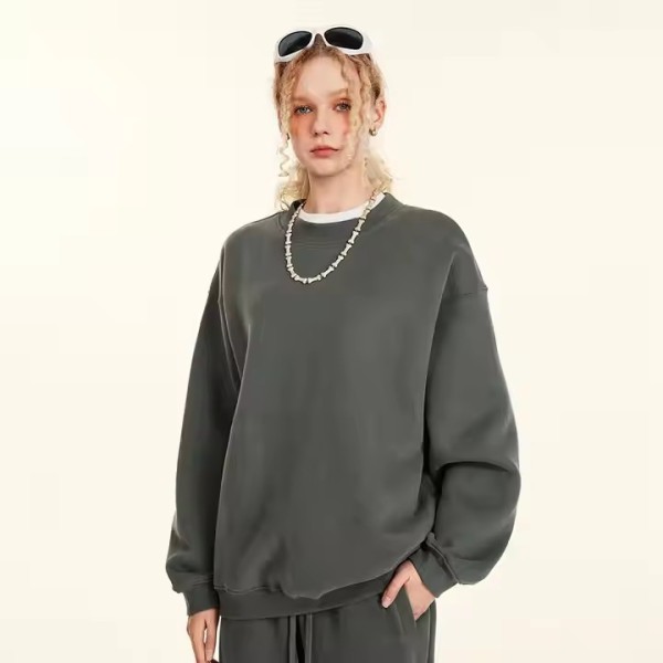 Custom LOGO High Quality 345G Basic Solid Color Streetwear Casual Oversized O-Neck Sweatshirts for M