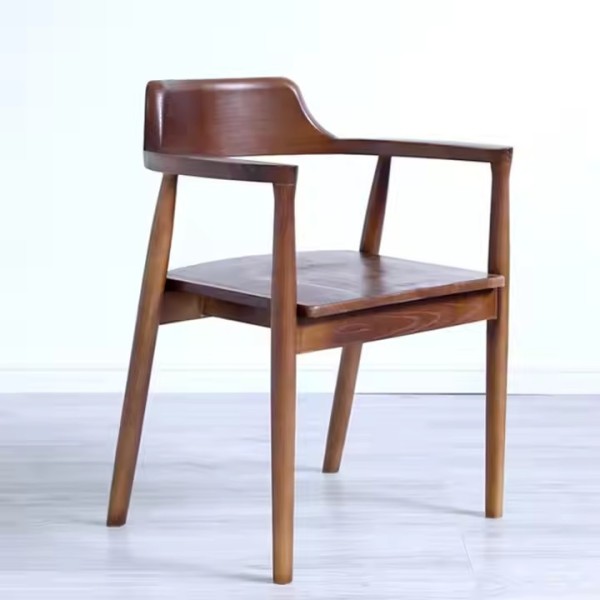 Modern Luxury Nordic Dining Chair Wood Elegant PU Leather Arms Restaurant Coffee Shop Dining Room Ch