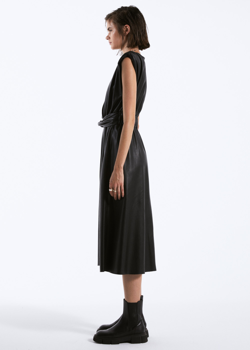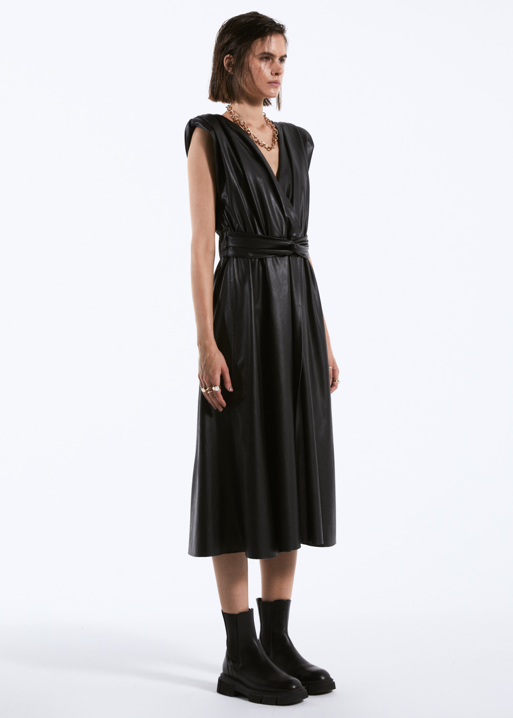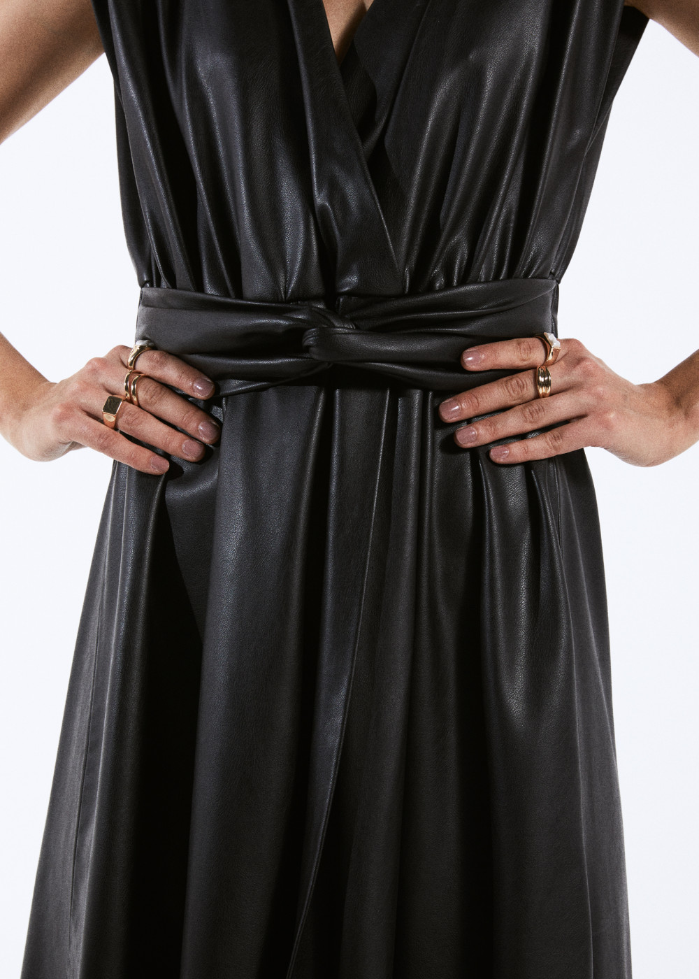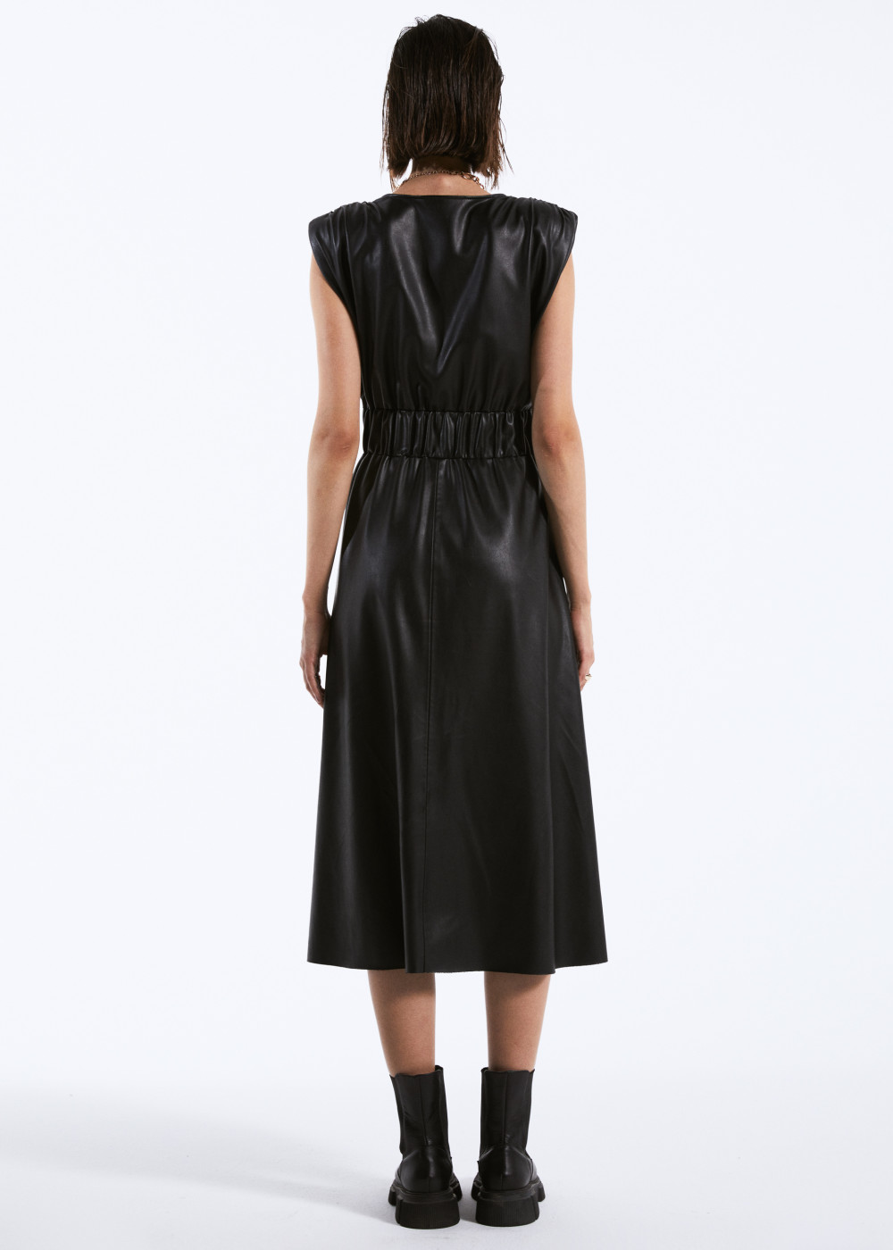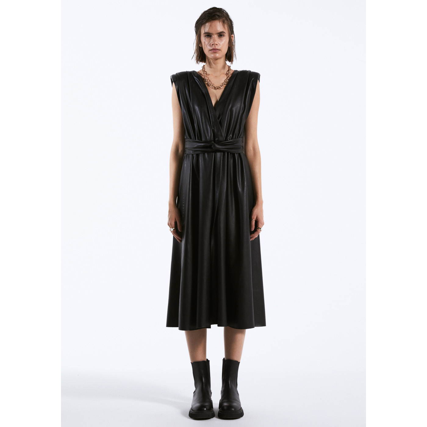 Hot Selling Winter Long Black Leather Casual Dress Sleeveless Premium High Quality Unique High Quality Fabric