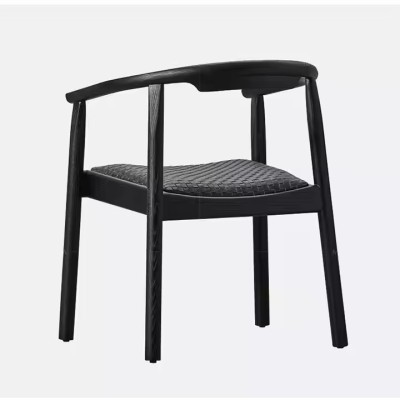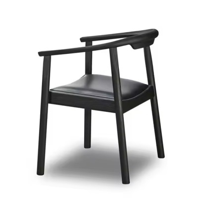 Luxury Curved Leather Dining Room Chair Oak Wood Black Upholstered Genuine Leather Dining Chair