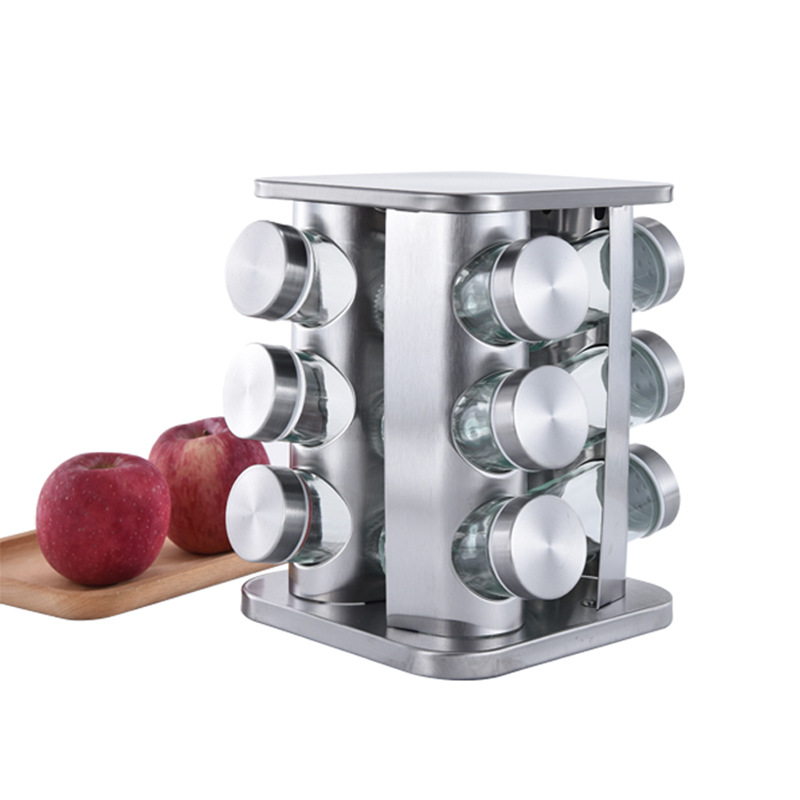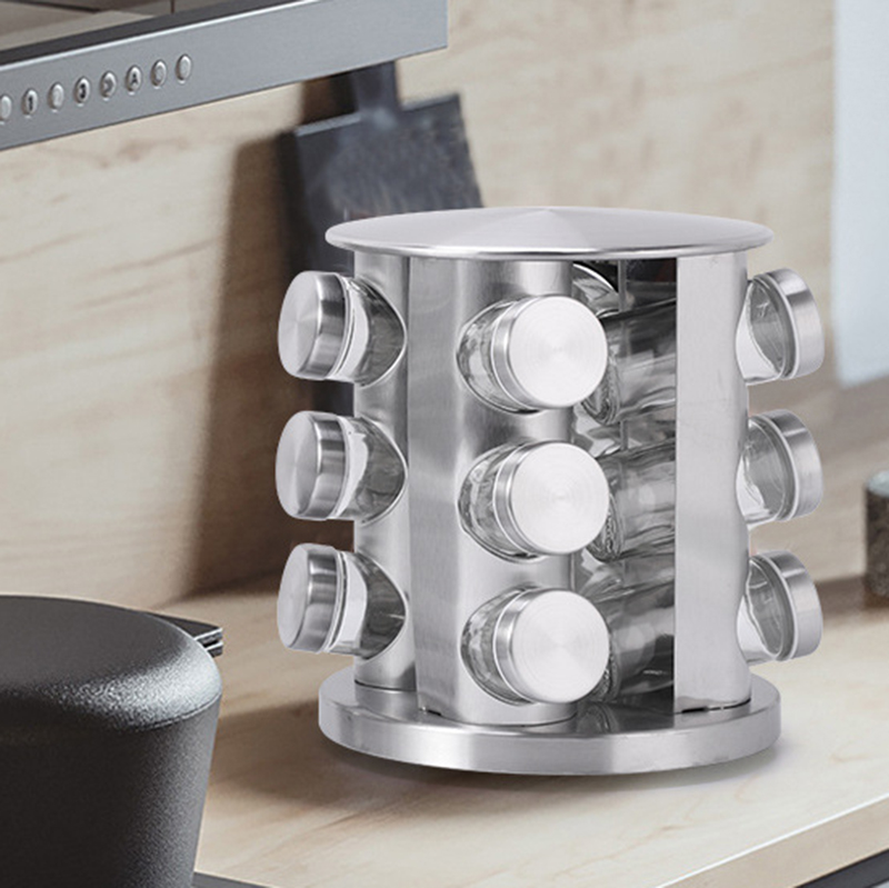 ★FOR SPICE: This rotating spice rack contains 12 spice jars to choose your favorite spices according to your taste. ★DESIGN:This 360-degree rotating spice rack saves more space and makes it easy to find ingredients in cooking by rotating. ★ QUALITY: High quality 100% stainless steel, rust-proof and sturdy, super durable. ★MULTIFUNTION USAGE: The rotating unique appearance is very eye-catching and can be used in home and commercial kitchens, hotel restaurants, party buffets, etc. It is extremely practical. ★SEALED FOR FRESHNESS: The spice jar has excellent sealing properties to keep the spices dry and fresh for a long time.