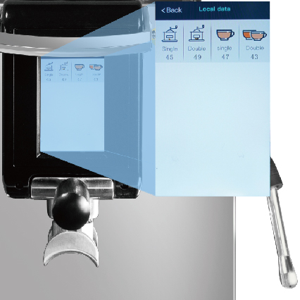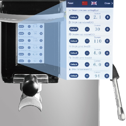 All datas are programmable. Single or double cup coffee volumn, single and double cup grinding amount, extraction temp. All baristas can find his way to cook good coffee.