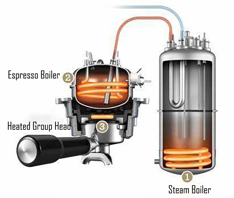 Dual Boiler Inside, One for coffee, the Other One for Milk Frothing.