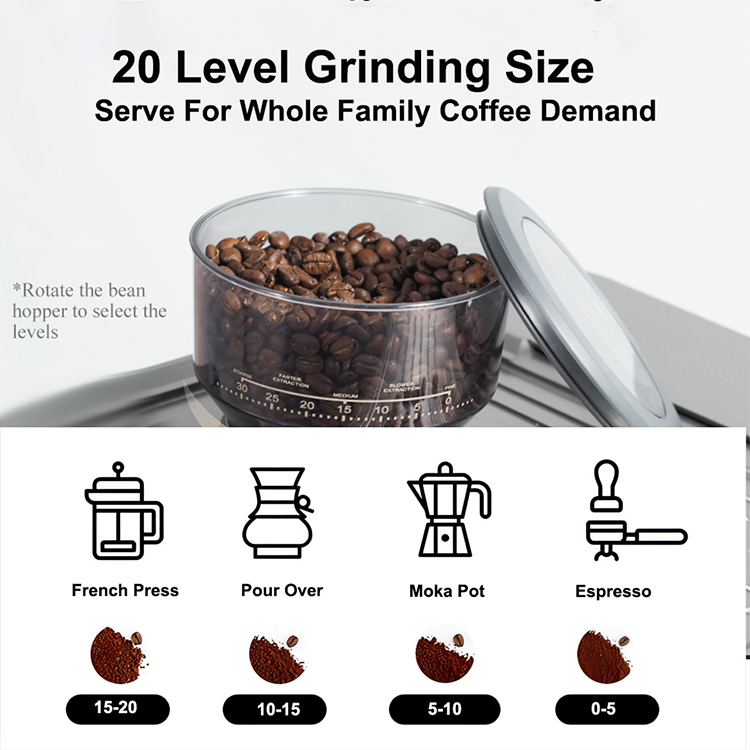 Digital dispaly allows users customize time and dose, make coffee interesting and funny at home.