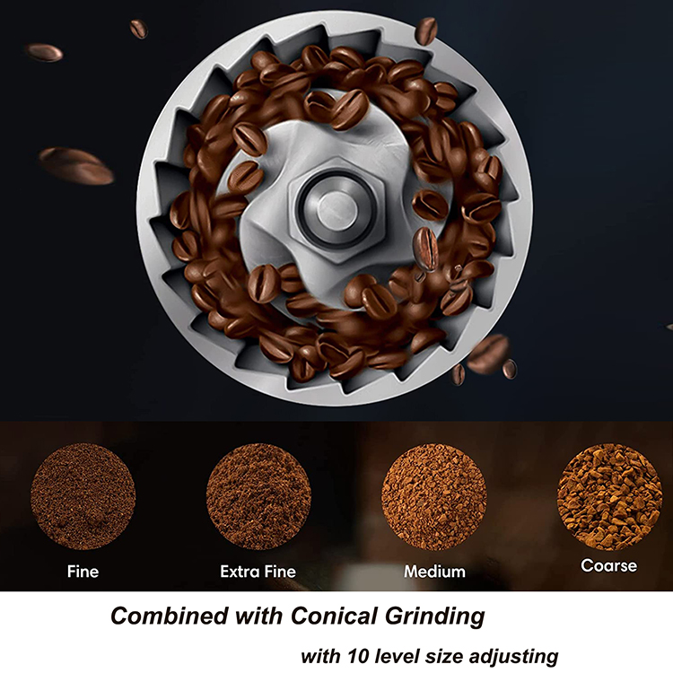 Conical grinding knife, more even size. The patented anti static tech gives grinding experience perfect.