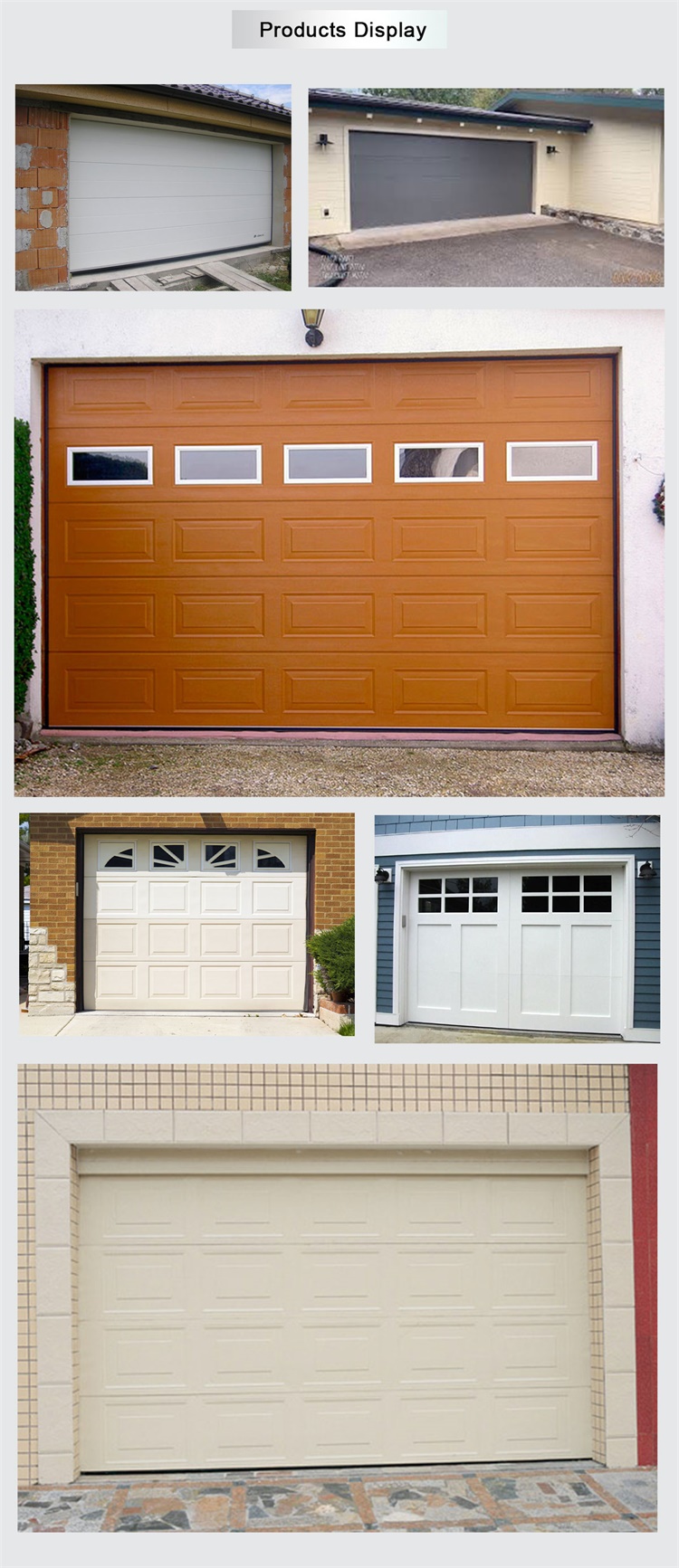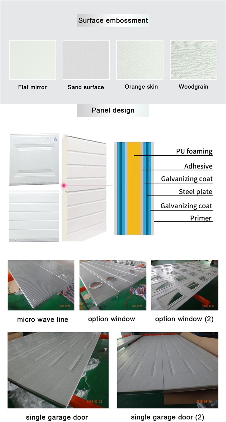 Sectional garage door is made by high quality panel, hardware and motor. And the panel is made by continuous line. The annual production ability reached to 50,000 sets. We strictly control all details to ensure outputting high quality products. We had cooperated many customers over 30 countries. And provided OEM service for CASICORMA, OBI, LORRYMERILIN, RONA and so on..