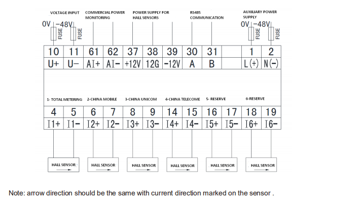 2. 6 circuits DC input,-48V voltage input,current input by 5V output hall effect current sensor